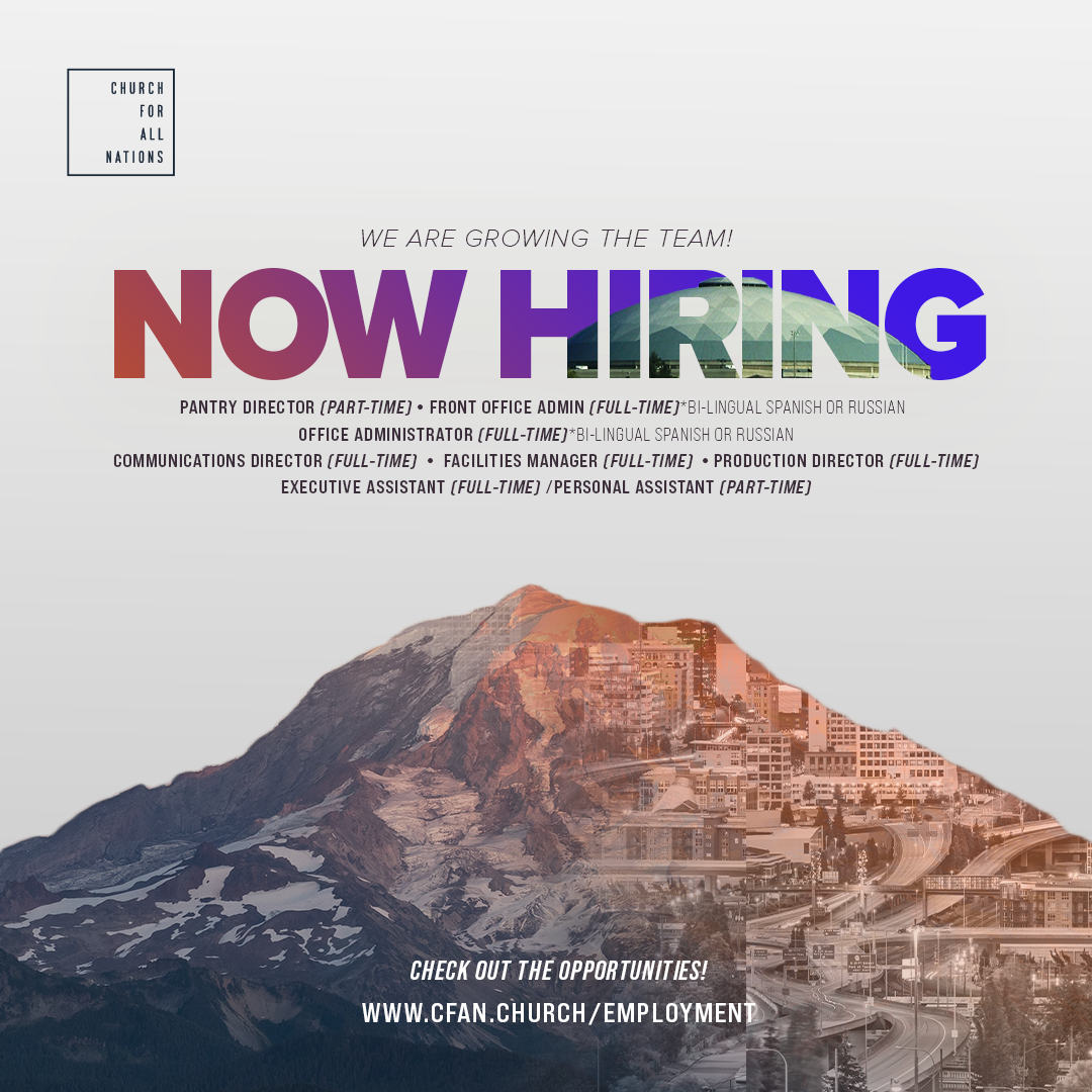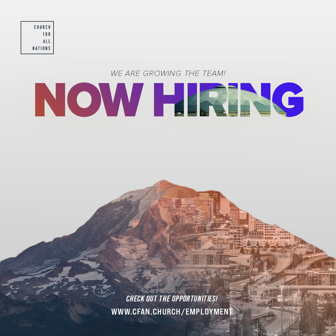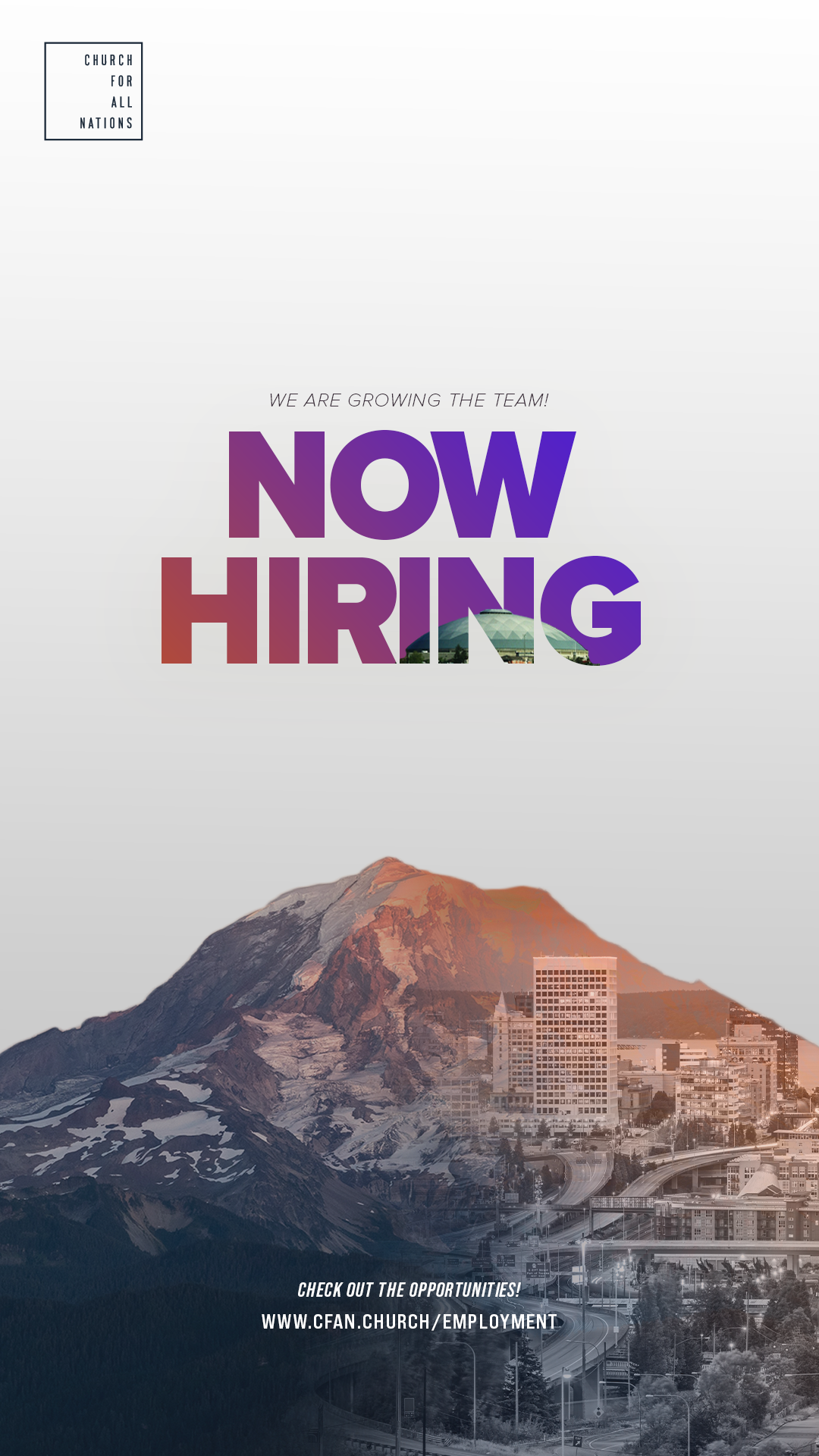 Now Hiring Graphics highlighting the need for new team members and the outdoor beauty of the City of Tacoma and the Pacific North West.